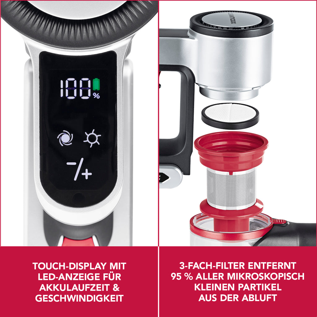 Mit dem stabilen Verlängerungsrohr aus Metall und einem der 3 Aufsätze setzen Sie ihn ganz nach Bedarf zusammen. Allergiker können aufatmen, denn die Abluft wird gleich 3-fach gefiltert – keine Chance für Pollen, Milben & Co!