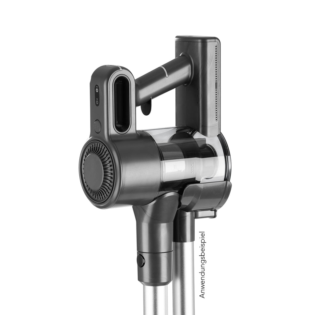 Mit der Standhalterung können Sie Ihren kabellosen Akku-Sauger sicher und platzsparend verstauen und aufbewahren! Dabei wird die Bürste unten in den Standfuß gestellt und das Saugrohr in die dafür vorgesehene Halterung gelegt - ohne Bohren & Befestigen.