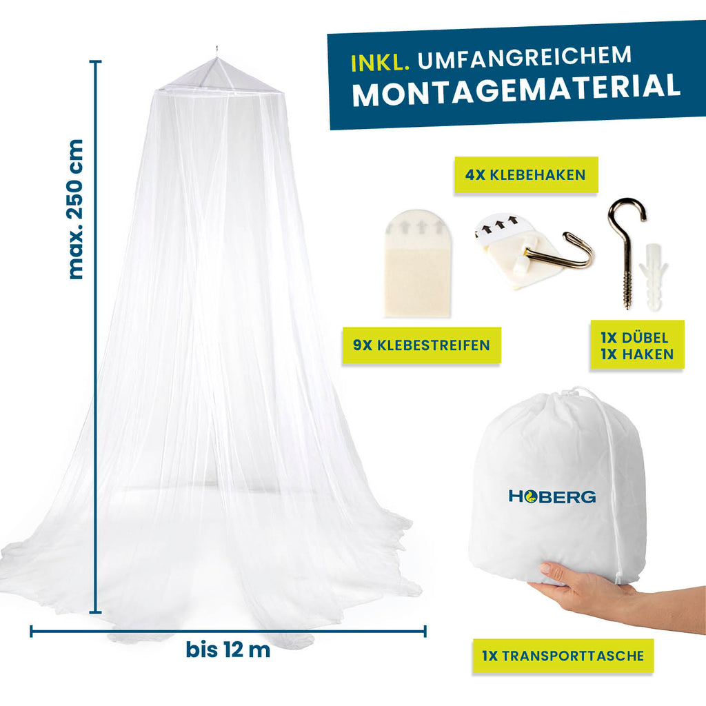 Der HOBERG Insekten-Baldachin macht Schluss mit nächtlichen Störungen durch summende Insekten! Komplett mit Befestigungsmaterial, komfortabel im Gebrauch und vielseitig einsetzbar - überzeuge dich selbst von der Qualität und Funktionalität unseres Produkts und sichere dir noch heute deinen persönlichen Schutz vor lästigen Insekten!