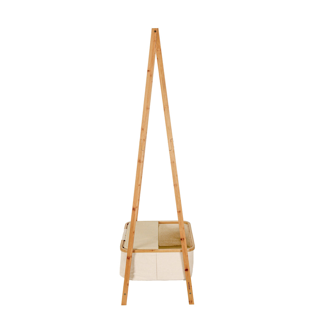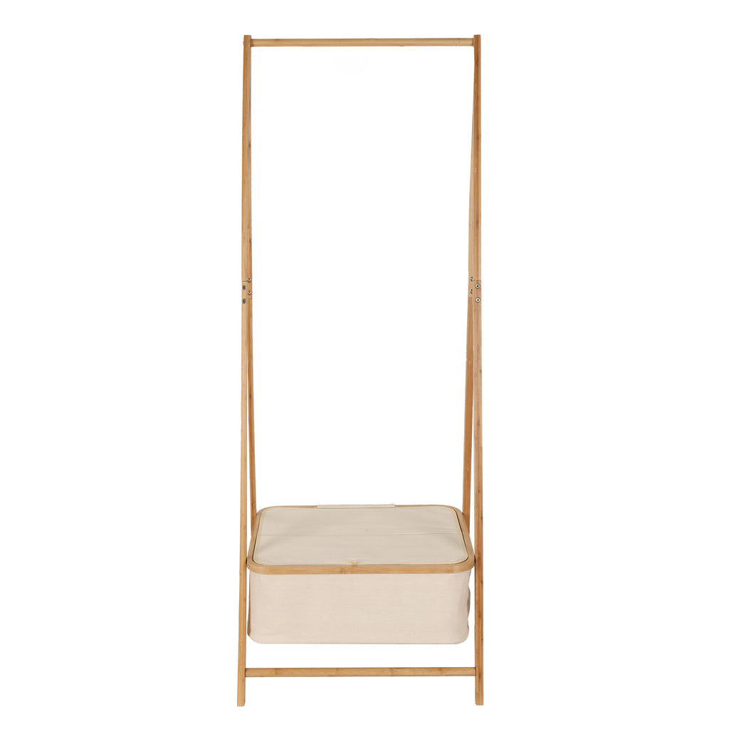 Zusätzliche Kleidungsstücke, oder auch Taschen, Handtücher etc., können platzsparend im integrierten Ablagefach des Kleiderständers untergebracht werden.