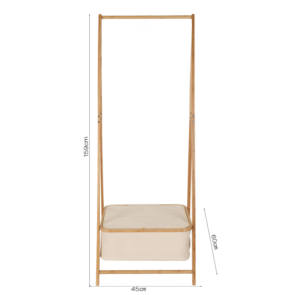 Die Maße der Garderobe sind platzsparend, dennoch bietet der Kleiderständer genügend Fläche und Stauraum: 159 (H) x 60 (T) x 45 (B) cm.