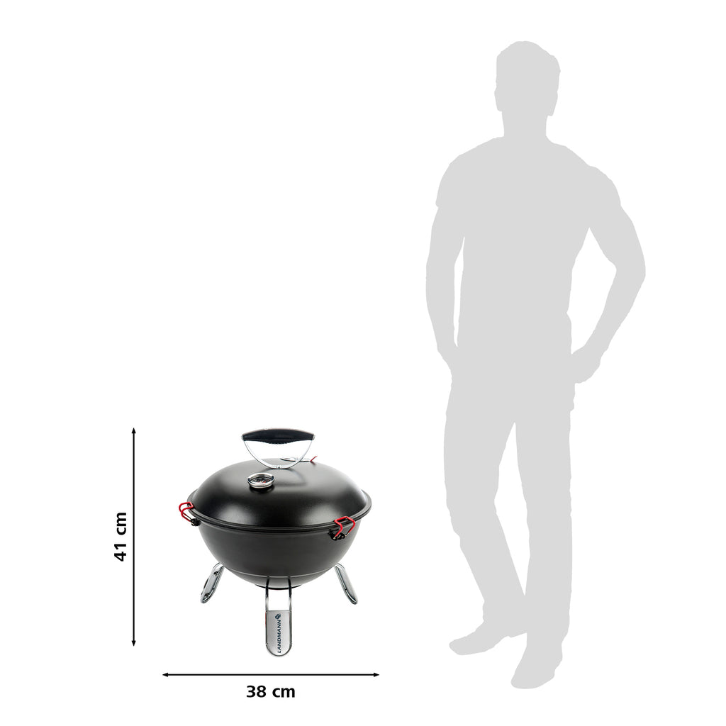 Der mattschwarze LANDMANN Piccolino ist der mobile Kugelgrill für zu Hause oder unterwegs.